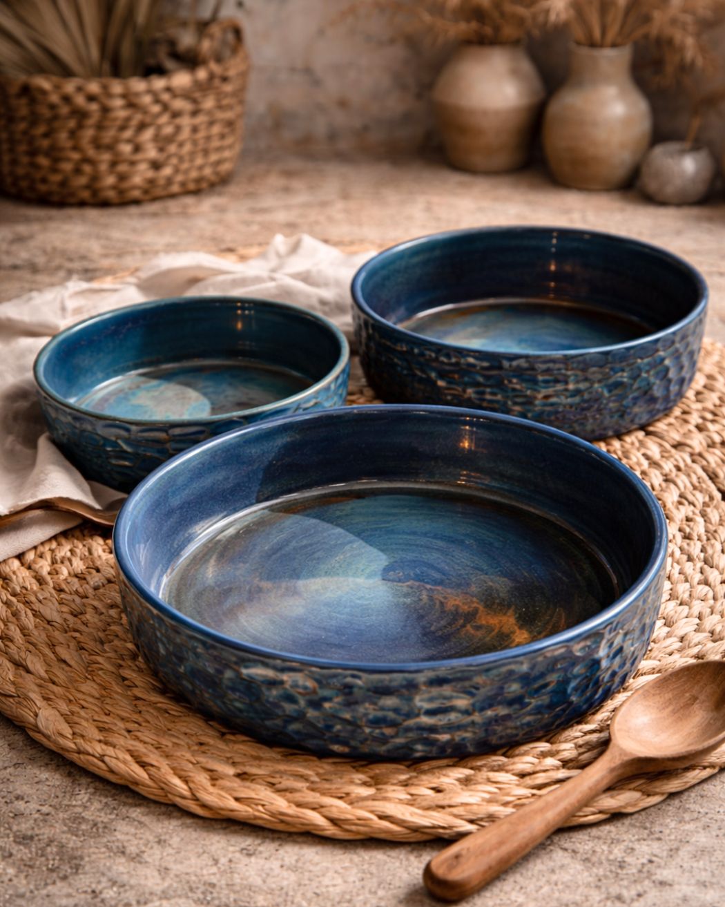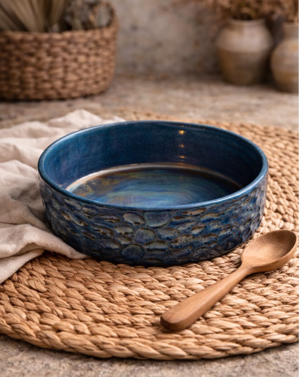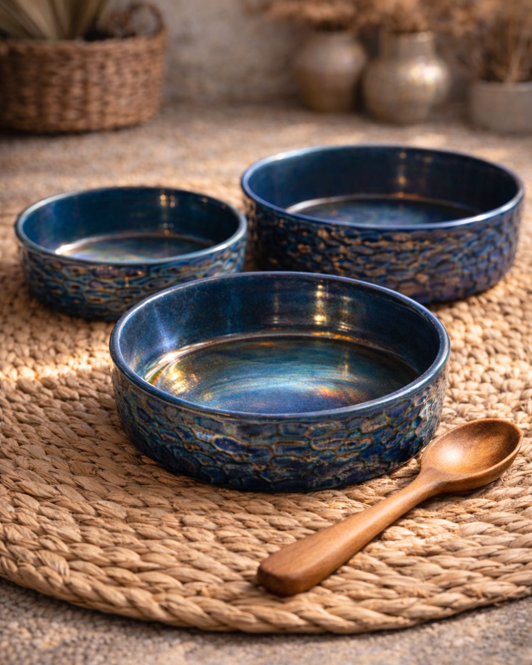 Midnight shimmer Tagines/Bowls – a stunning piece inspired by a nightsky color palette. Its glossy finish shifts with light, revealing layers of magical colors. Perfect for serving or baking/cooking, each piece exudes elegance and sophistication, making it a stunning addition to any table. Available in 3 sizes.