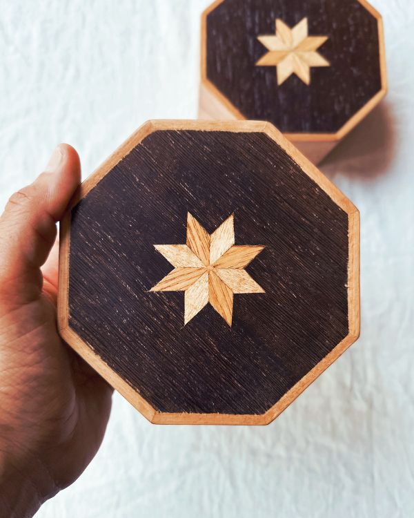 Each piece is made from natural wood with unique color tones and textures, highlighting true artisan craftsmanship. A timeless and elegant accent for any home décor or dressing table.