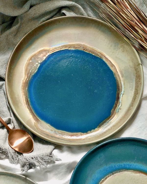 This is a handmade plate. Slight variations in color and shape happen from one product batch to another, but the product essence, design and color scheme stay the same. These variations add to the authenticity and uniqueness of each handmade tableware item.