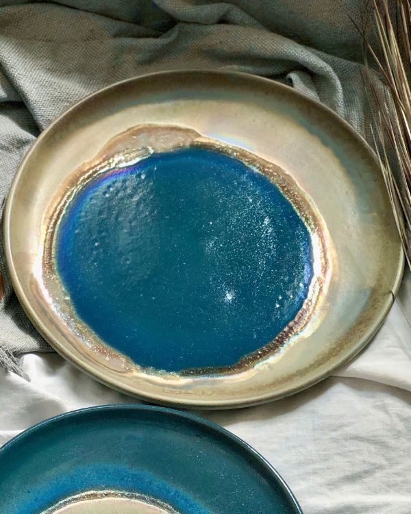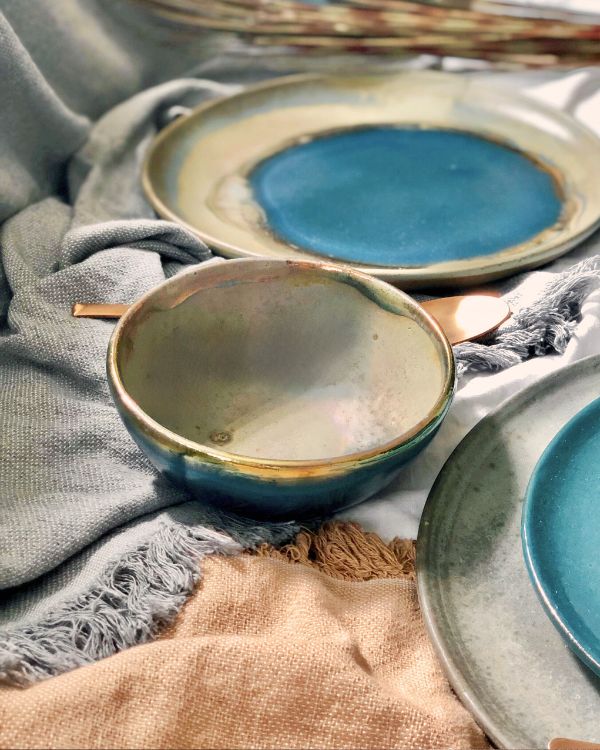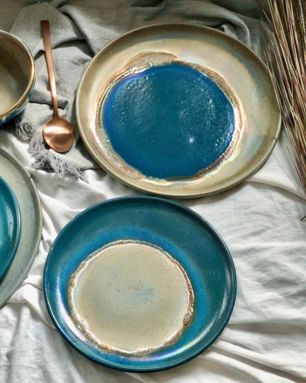This is a handmade dinner set. Slight variations in color and shape happen from one product batch to another, but the product essence, design and color scheme stay the same. These variations add to the authenticity and uniqueness of each handmade tableware item.