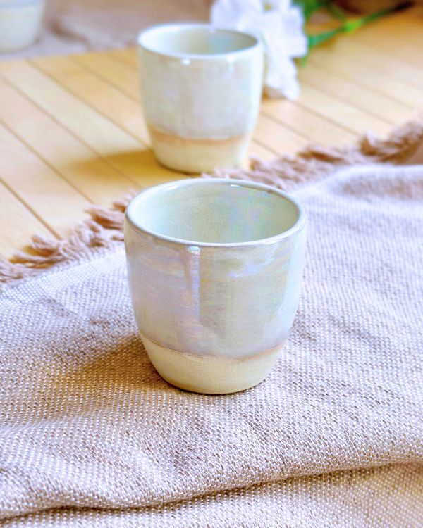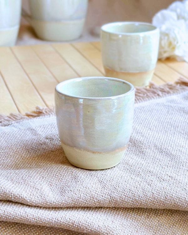 The Pearl Oyster Espresso Cup is a real beauty – with light earth/sand tones and a stunning pearl-like finish.