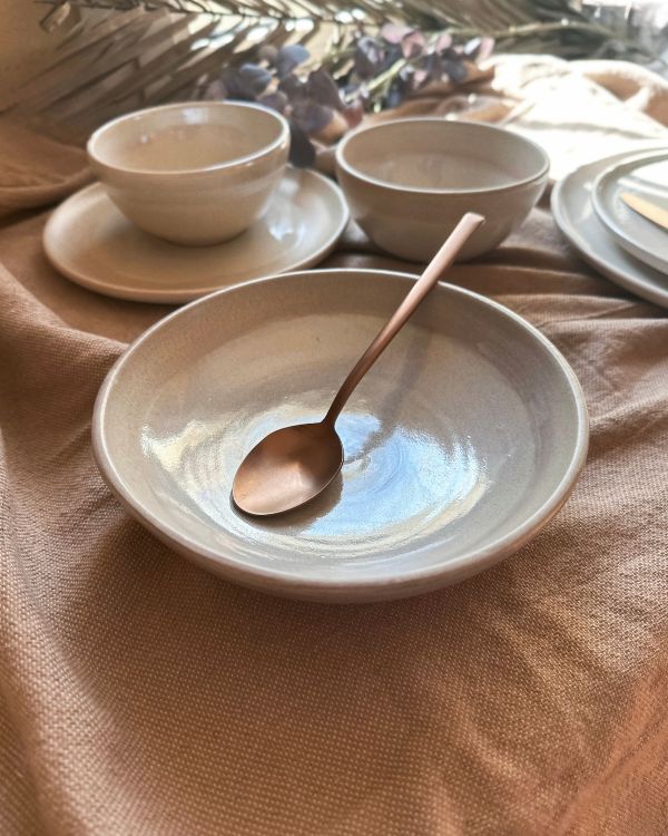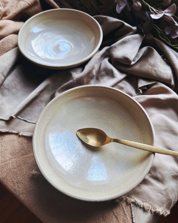 The Pearl Oyster captures the natural beauty of an oyster shell – one with a pearl embedded within! This truly unique ceramic pasta bowl  features a pearl-like cream/off-white surface, embedded within a thick rim of rustic and beige. The Pearl Oyster is a real testament that even simple, neutral color palettes, can yield breathtaking results.