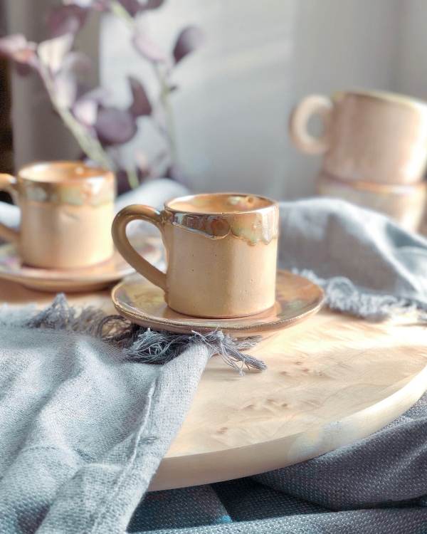 This is a handmade cup/mug. Slight variations in color and shape happen from one product batch to another, but the product essence, design and color scheme stay the same. These variations add to the authenticity and uniqueness of each handmade tableware item.